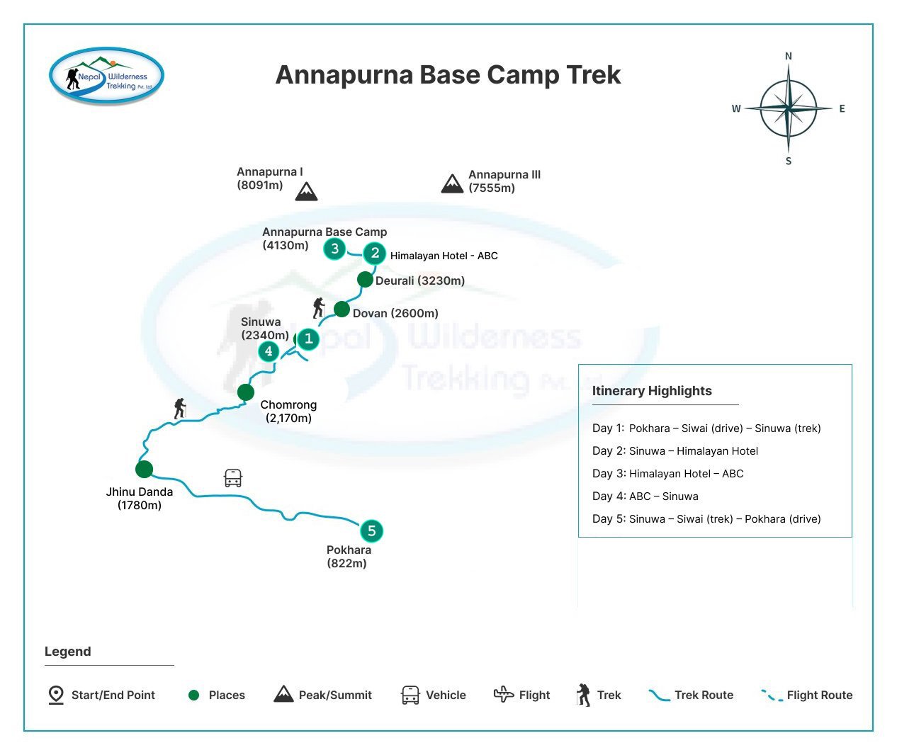 Nepal Wilderness Trekking provides transport from Pokhara to Jhinu, 1300 m, from where the 5-day ABC short trek will start. We will follow the same driveway towards Pokhara. Nepal wilderness trekking will drop you off at your hotel. Additionally, ABC trek with kids is also doable, people above 60 years, and beginner traveler,s as they get an opportunity to explore the local culture by exploring the best of the Himalayas.
