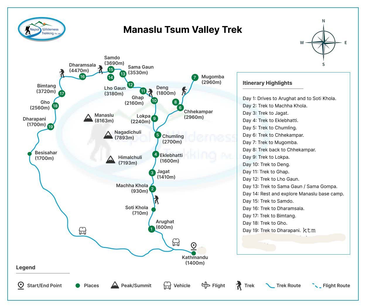 The Manaslu Tsum Valley Trek package includes accommodation, meals, bus tickets, permits, guide and porter wages, insurance, and equipment. A private jeep option incurs additional costs. There are shorter treks in this area, one is 12 12-day Manaslu circuit trek, and another is a 14-day Manaslu circuit trek.