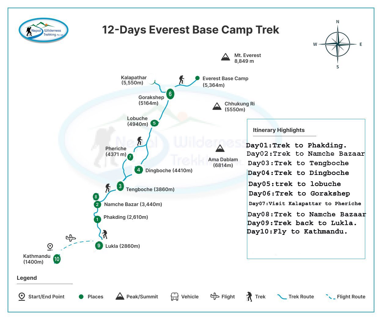 The Short Trek to Everest is tailored for time-conscious adventurers, reflecting the amenities of the 14-day expedition, offering an optimal blend of efficiency and exploration, all under the expertise of Nepal Wilderness Trekking Pvt. Suitable for physically hardy, healthy individuals with prior high-altitude trekking experience, this trek offers a condensed yet comprehensive Himalayan experience.